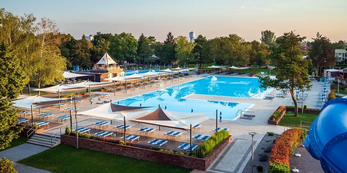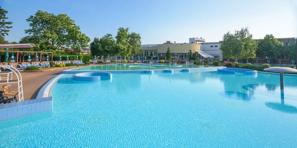 Całkowicie odnowiony Hotel Thermalpark *** zaprasza na wypoczynek połączony z relaksem w basenach termalnych kompleksu Thermalpark Dunajská Streda. Znajdziecie tu 10 basenów, zjeżdżalnie wodne, naturalne jezioro z atrakcjami wodnymi oraz strefę wellness. To miejsce na wygodny pobyt, który możecie spędzić zarówno we dwoje, jak i całą rodziną.