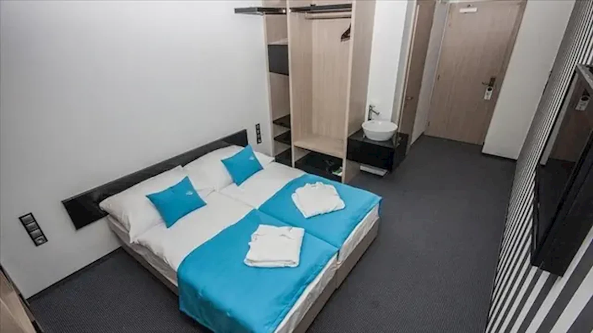 obiekt należący do kompleksu AquaCity (aquapark z wodami termalnymi), położony w odległości kilku kroków od aquaparku, tuż przy stadionie sportowym.