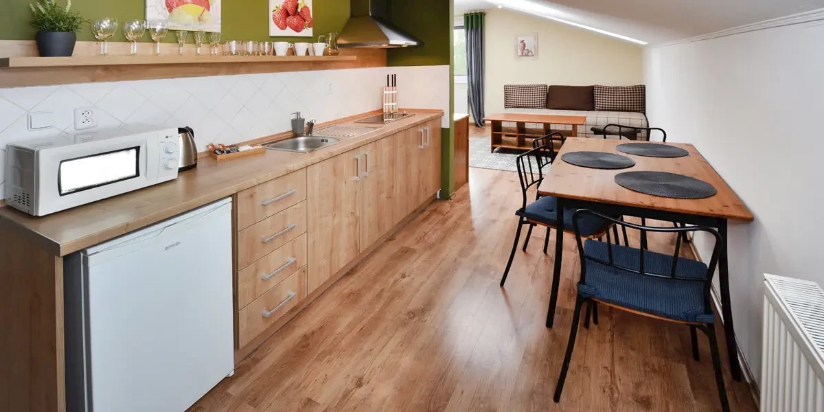 - Zakwaterowanie w wybranym apartamencie z aneksem kuchennym