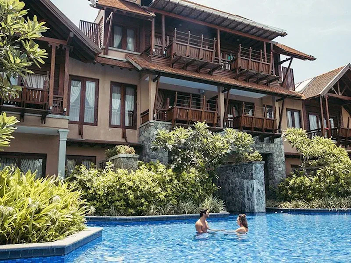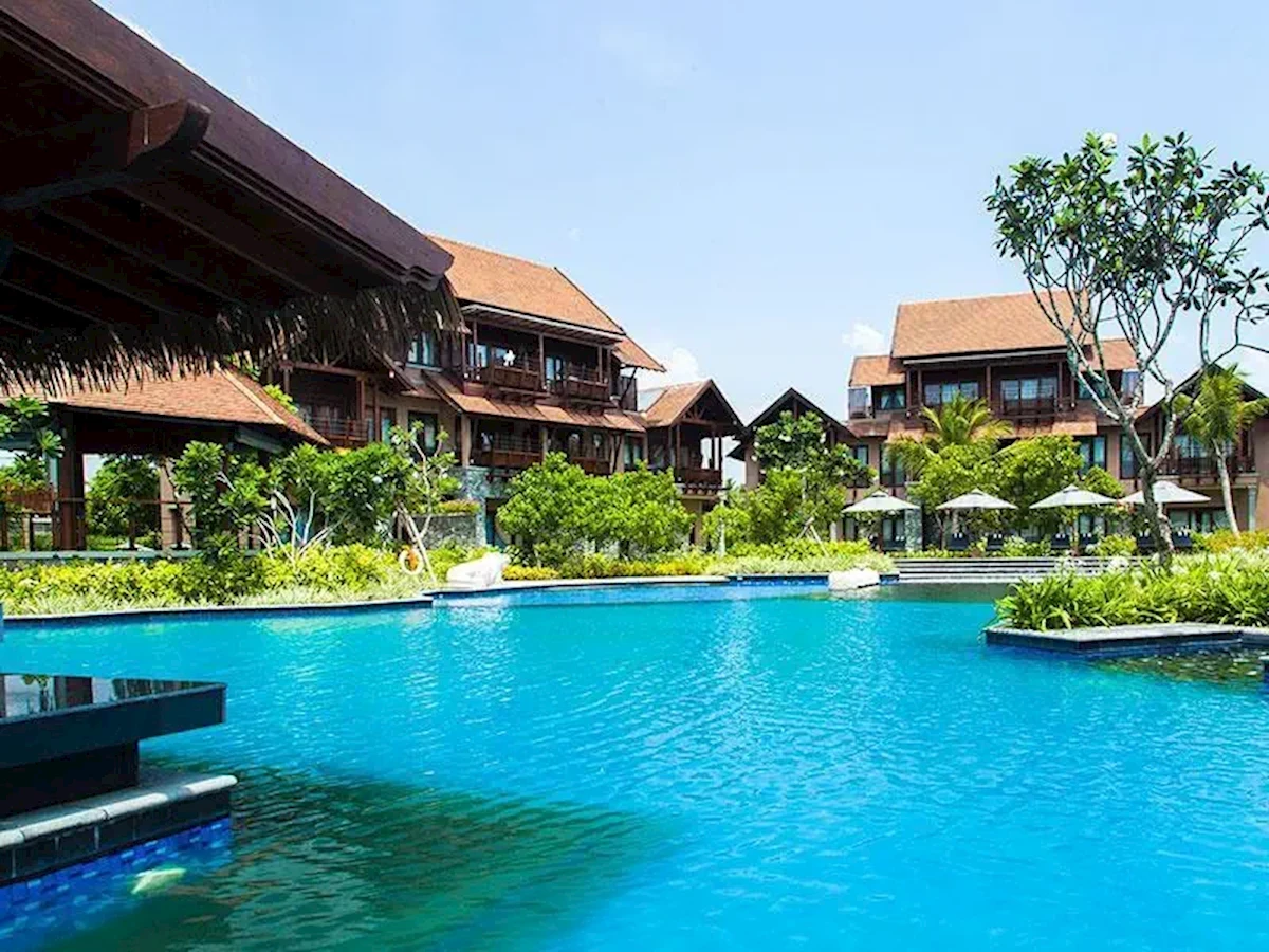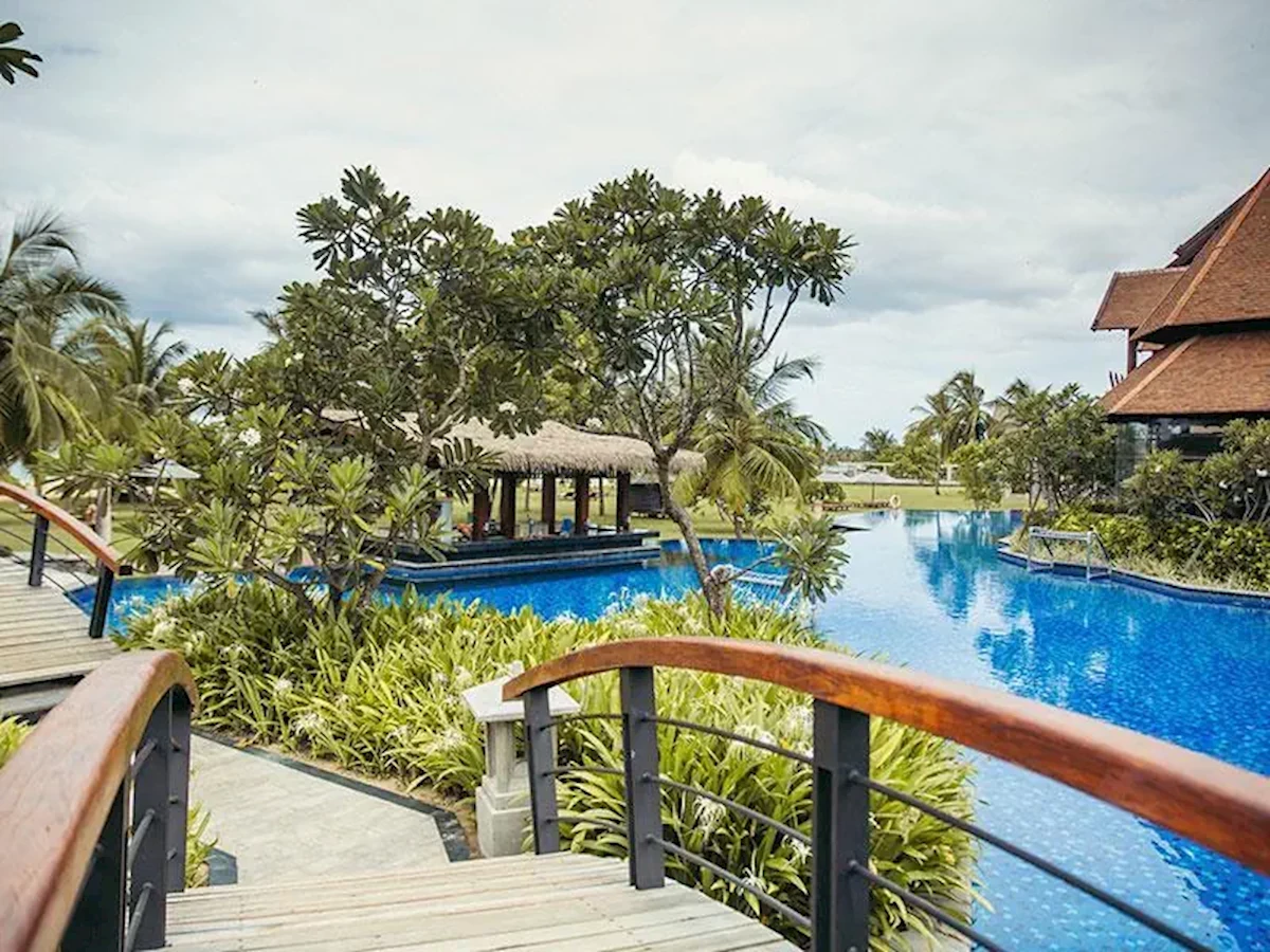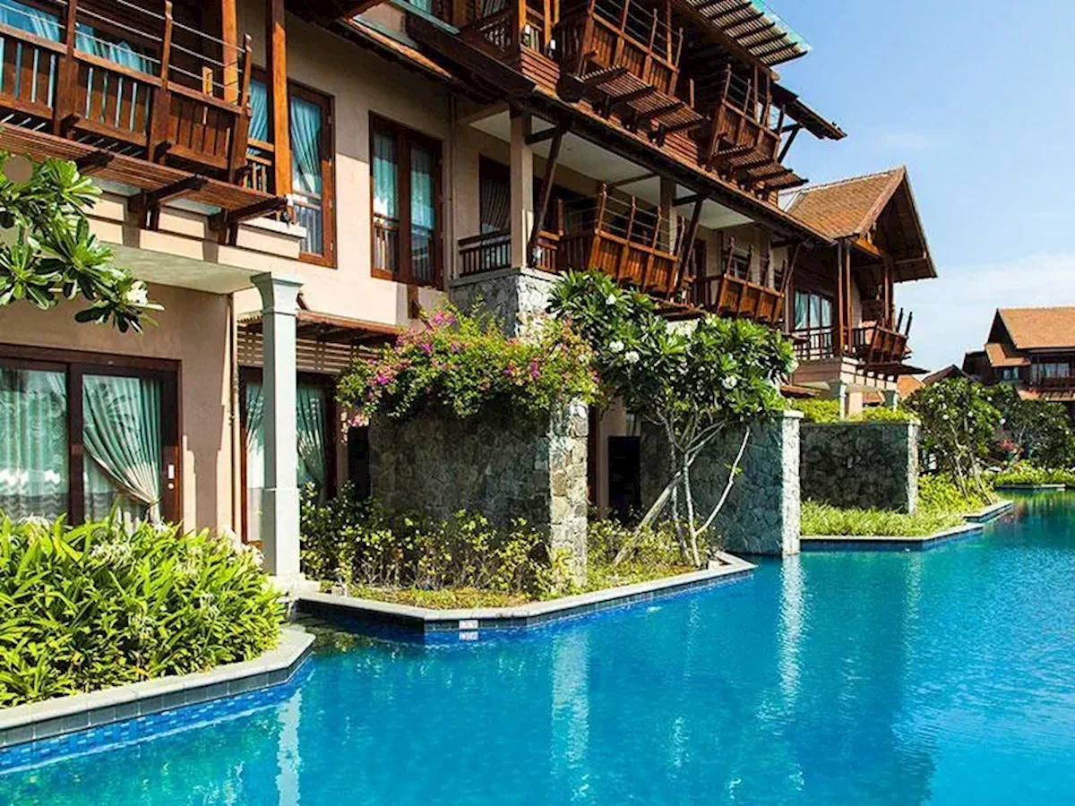 Jego odrębna architektura została zainspirowana stylem tajskim i balijskim, z fasadą z ciemnego drewna, a wiele miejsc publicznych - w tym barów, restauracji i kilku spa na świeżym powietrzu - znajduje się w pawilonach na świeżym powietrzu i budynkach krytych strzechą w całym ośrodku. Teren jest równie piękny z mostami przecinającymi duży basen i ścieżkami prowadzącymi do ładnych ogrodów, które prowadzą w kierunku plaży. Stąd można spacerować wzdłuż pięknej zatoki lub uprawiać szereg sportów wodnych na ogólnie spokojnych i płytkich wodach zatoki.
