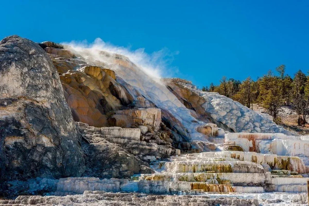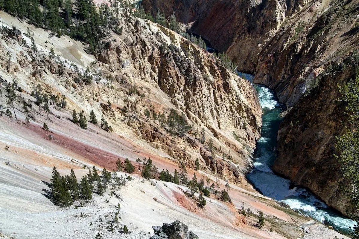 Jadąc wzdłuż rzeki Shoshone, wkrótce osiągamy granicę Parku Narodowego Yellowstone, czyli najważniejszego punktu naszej wycieczki po USA. Ten najstarszy park narodowy świata utworzony w 1872 roku liczy niemal dziewięć tysięcy kilometrów kwadratowych i leży na granicy trzech stanów. Został też wpisany na listę UNESCO. Na unikatowym pod względem przyrodniczym obszarze żyją niedźwiedzie, bizony, wilki, rysie, wapiti, łosie, pumy, muflony i inne ssaki. Mamy ogromną szansę ujrzenia niektórych z nich. Jednak największą atrakcją parku są zjawiska wulkaniczne, przypominające nam, że pod naszymi stopami znajduje się wielka komora magmowa. Na pewno zobaczymy słynne gejzery, wulkany błotne i gorące źródła. Niewątpliwie poczujemy fumarole, czyli wulkaniczne opary o specyficznym zapachu zgniłych jaj. Na wycieczce po Yellowstone nie zabraknie pięknych wodospadów i kanionów. Jeden z nich ze względu na żółty kolor dał nazwę całemu miejscu.
