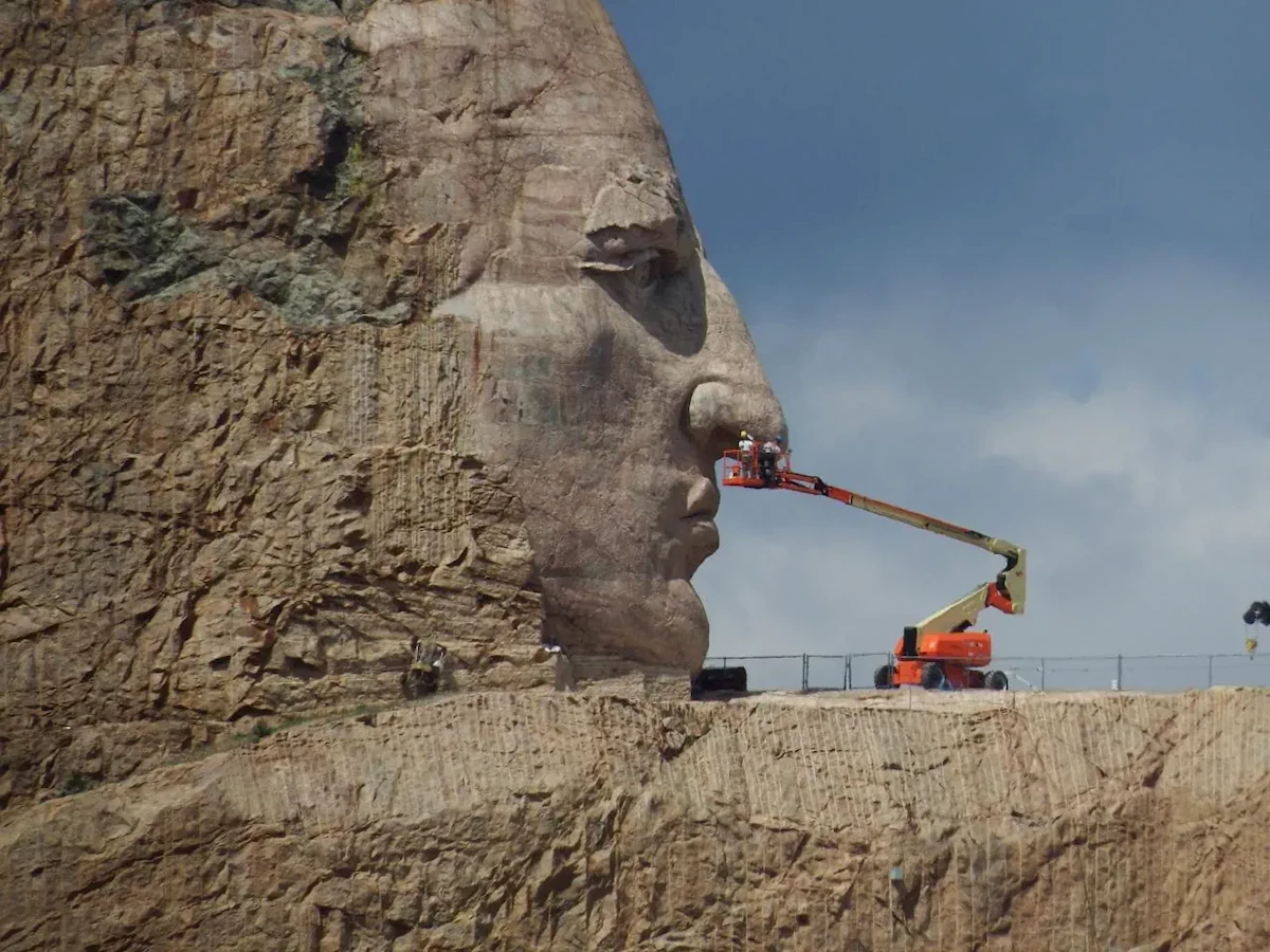 Krótka przejażdżka dzieli nas od będącego wciąż w budowie pomnika indiańskiego wodza Szalonego Konia. Twórcą pomnika jest znakomity rzeźbiarz Korczak Ziółkowski, syn polskich imigrantów, który rozpoczął tu swą pracę w roku 1948. Ziółkowski asystował wcześniej w pracach na Mount Rushmore, gdzie lokalni Indianie poprosili go o stworzenia pomnika honorującego również Indian: "Chcielibyśmy, by biały człowiek wiedział, że czerwony człowiek też ma swoich bohaterów". Dziś jego wielkie dzieło kontynuują dzieci i wnuki. Po ukończeniu Szalony Koń będzie największą rzeźbą świata, o długości 195 m i wysokości 172 m! Monument poświęcony wodzowi Dakotów robi na wielu jeszcze większe wrażenie niż Mt Rushmore.
