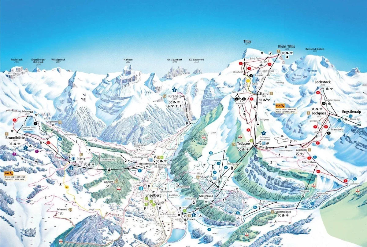 Kolej: Engelberg (w miejscowości), Lucerna (ok. 35 km) Przelot: Zurych (ok. 105 km), Berno (ok. 140 km), Bazylea (ok. 140 km)Karnet narciarski - dodatkowe informacje.