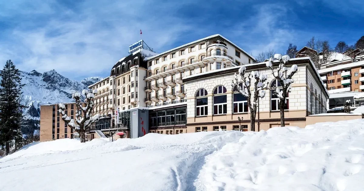 Przytulny 3-gwiazdkowy Hotel Terrace położony jest ponad miejscowością Engelberg, do której można wygodnie dotrzeć windą. Do Titlis Bergbahn jest o ok. 1 km, natomiast autobus dla narciarzy kursuje bezpośrednio spod dworca w centrum Engelberg (ok. 200 m od windy). Z hotelu rozpościera się malowniczy widok na miasteczko Engelberg oraz otaczające masywy górskie.Do wyposażenia centralnie położonego obiektu jest recepcja z przechowalnią bagażu, Wi-Fi, bar "Porticos", pokój gier (za opłatą, w tym bilard), strefa zabaw dla dzieci oraz przechowalnia sprzętu narciarskiego. W centralnie położonym obiekcie znajduje się recepcja z przechowalnią bagażu, Wi-Fi, bar „Porticos”, pokój gier (za opłatą, w tym bilard), plac zabaw dla dzieci i przechowalnia sprzętu narciarskiego. Dwie drewniane sauny w strefie zewnętrznej, prysznice wellness i pokój relaksacyjny mogą być również używane przez 2 godziny dziennie/osobę za opłatą (godziny otwarcia wg informacji na miejscu).Przy obiekcie dostępne są płatne miejsca parkingowe (ograniczona dostępność, brak możliwości rezerwacji, konieczność posiadania łańcuchów śniegowych). Dostępna jest również stacja ładowania samochodów elektrycznych (za opłatą, ograniczona dostępność).