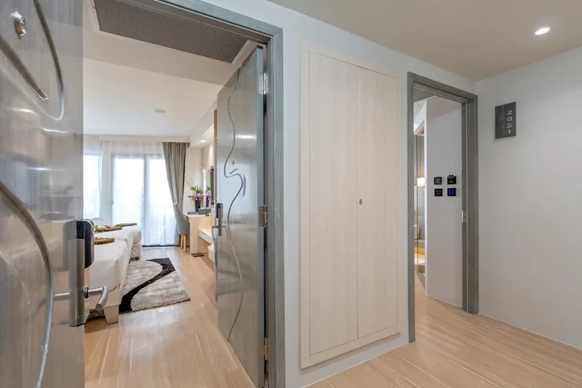 Dla max. 6 osób, Przestrzeń zewnętrzna: Balkon, Kanały telewizji: Angielski, Telefon w pokoju, prysznic, Powierzchnia pokoju: ok. 60 m2, Dostawka: łóżko standardowe, Rodzaj podłogi: laminat, Sprzątanie codziennie, miejsce do pracy, 2 sypialnie, Maksymalna liczba osób dorosłych: 6, Maksymalna liczba dzieci: 2, Kwiaty i owoce, Widok na miasto, Liczba łazienek: 2, Liczba toalet: 2, Kuchenka mikrofalowa, Zestaw do parzenia kawy i herbaty, Klimatyzacja: Klimatyzacja indywidualnaPanorama Room