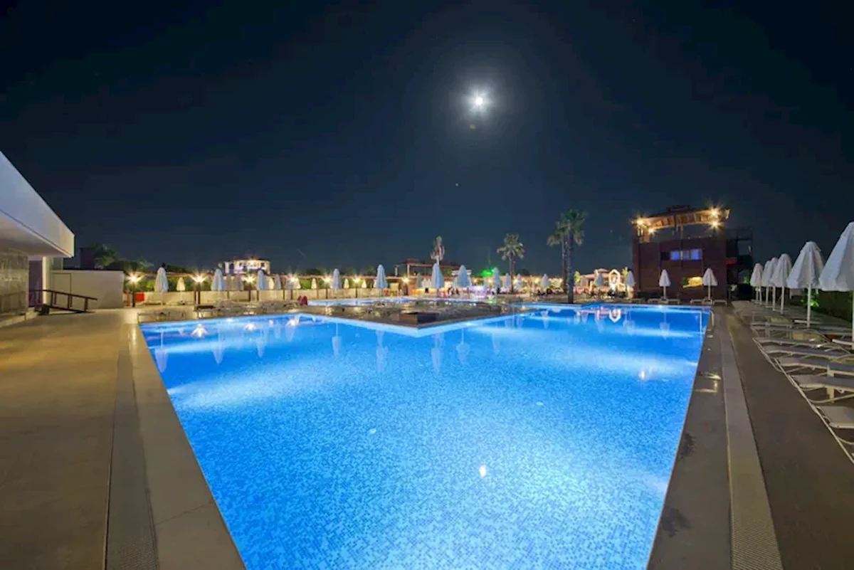 Orzeźwienie i ochłodę znajdziecie Państwo w jednym z naszych basenów (krytym bądź otwartym). Zjeżdżalnia wodna dostarczy mnóstwa wrażeń zarówno młodszym jak i starszym gościom. Położone w cieniu parasoli leżaki idealnie nadają się na chwilę relaksu. Na miejscu dostępny jest ponadto bar z przekąskami. Narty wodne, jet ski, przejażdżki motorówką i przejażdżki na bananie wodnym zapewnią mnóstwo dobrej zabawy amatorom sportów wodnych. Bogata oferta sportowa wewnątrz obiektu obejmuje studio fitness, tenisa stołowego, darta, jogę, zajęcia gimnastyczne i aerobik, jak również za dodatkową opłatą bilard. Obiekt oferuje w Centrum Wellness bogatą gamę zabiegów, w tym saunę, łaźnię turecką i zabiegi masażu, jak również za dodatkową opłatą spa. Do pozostałych możliwości spędzenia czasu wolnego należą program animacyjny, muzyka na żywo, miniklub i minidisco.Karty kredytowe: