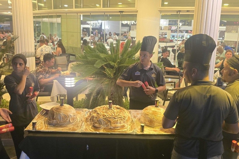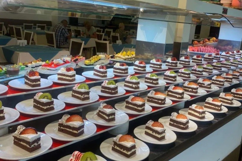 W ramach rezerwacji goście mają zapewnione wyżywienie w formule all inclusive. Śniadanie, obiad i kolacja serwowane w formie bufetu w restauracji głównej, która gotuje dania kuchni greckiej, międzynarodowej, śródziemnomorskiej, orientalnej, regionalnej, tureckiej, dania z grilla, a także ryby/owoce morza (dostępne potrawy dietetyczne, bezglutenowe, wegetariańskie, wegańskie). Dodatkowo podawane są przekąski, przekąski o północy, ciasto, lody, wybrane napoje bezalkoholowe, wybrane lokalne napoje alkoholowe, wybrane napoje do posiłków, a także popołudniowa kawa/herbata. Na terenie kompleksu znajdują się jeszcze trzy restauracje à la carte oraz 3 bary (w lobby, na plaży, przy basenie). Uwaga! Wymagane noszenie opasek all inclusive.