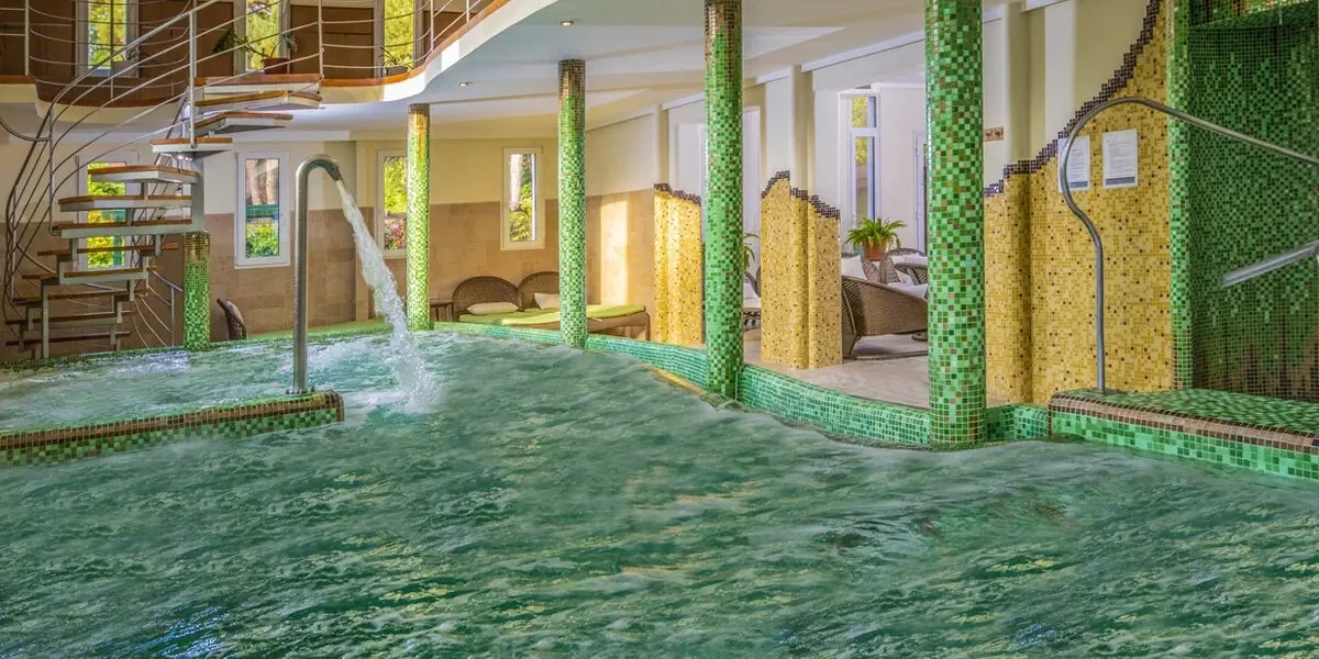 Udogodnienia: Basen kryty, Basen dla dzieci, Jacuzzi, SPA, Sauna, Masaże, Wellness, Zabiegi odnowy biologicznej, Bar / restauracja, Sala zabaw dla dzieci, Pokój gier, Animacje dla dzieci, Ogród / Park, Klimatyzacja, Winda, Parking, Płatność kartą