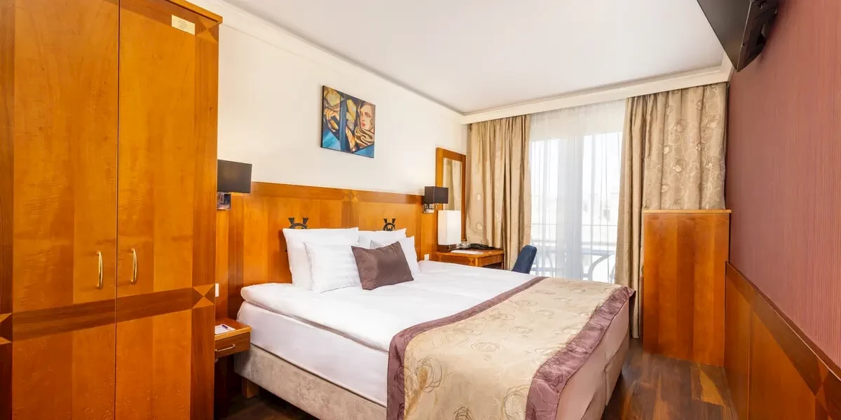 Klimatyzowany pokój z widokiem na dziedziniec, wyposażony w zestaw do parzenia kawy i herbaty, minibar, sejf, smart TV, dostęp do Wi-Fi i ręczniki. W łazience jest wanna i suszarka do włosów.Prezentowane w informacji opisy, opinie oraz zdjęcia przedstawiają subiektywne odczucia ich autora i nie stanowią części oficjalnego opisu obiektu organizatora turystyki (przedsiębiorcy turystycznego). Pokoje oraz udogodnienia mogą się różnić od zawartych w informacji, za co Travelplanet.pl S.A. nie ponosi odpowiedzialności. Oficjalny opis dostarczony przez organizatora turystyki znajdziesz na stronie poświęconej wybranej przez Ciebie imprezie turystycznej, po wskazaniu interesującego Cię terminu wyjazdu.