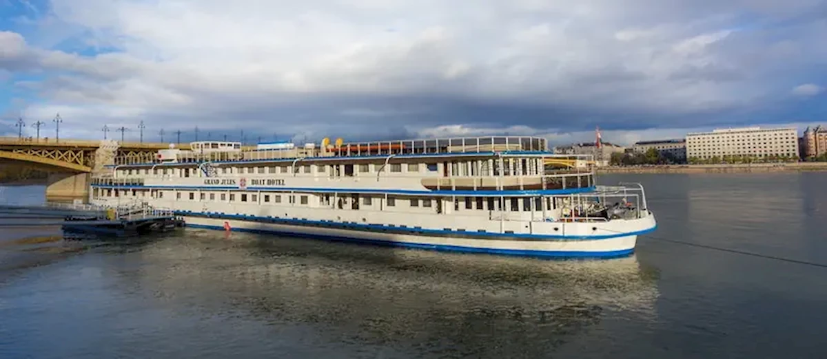 Grand Jules - Boat Hotel to hotel na łodzi nad brzegiem Dunaju po stronie Budy w Budapeszcie. Budynek węgierskiego parlamentu oddalony jest od obiektu ok 800 metrów. Ten hotel znajduje się kilka minut od mostu Margaret i kąpieliska Kiraly. W promieniu ok. 300 metrów na Państwa wizytę czeka kilka restauracji i kawiarni, a ok. 400 metrów od sklepu spożywczego. Przystanek tramwajowy linii 6, a także inne linie tramwajowe i metro H5 znajdują się około 350 metrów od hotelu. Linia metra M2 na Batthyány Tér oddalona jest o ok. 850 m. Lotnisko w Budapeszcie (BUD) oddalone jest o ok. 28 km.Adres - Grand Jules, Boat Hotel: