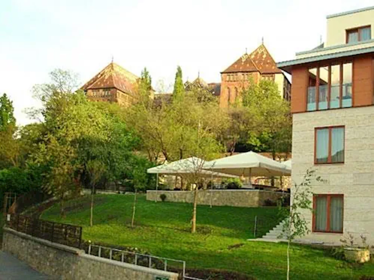 Hotel Castle Garden znajduje się w Budapeszcie, w spokojnej okolicy na Wzgórzu Zamkowym, zaledwie 300 m od Zamku Królewskiego. Centrum miasta oddalone jest o około 2 km, a najbliższa stacja metra Széll Kálmán tér (M2) znajduje się 600 m od hotelu, co zapewnia szybki dostęp do innych części miasta. Do słynnego Mostu Łańcuchowego można dotrzeć pieszo w około 15 minut (ok. 1,2 km). Dworzec kolejowy Keleti jest oddalony o 4 km, a lotnisko Budapest Liszt Ferenc (BUD) znajduje się w odległości około 23 km. W pobliżu hotelu znajdują się liczne restauracje, kawiarnie i atrakcje turystyczne, w tym Baszta Rybacka (1 km) i Parlament (2,5 km).Wyposażenie: