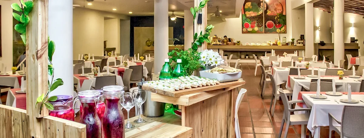 All inclusive: śniadania (07:00-10:00), obiady (12:00-15:00), kolacje (19:00-22:00). Posiłki podawane są w formie bufetu. W godz.: 10:00-18:00 serwowane są przekąski w barze przy basenie. Napoje bezalkoholowe i lokalne napoje alkoholowe (rum, piwo, wódka, drinki) serwowane są w barach hotelowych. Bar przy basenie podaje napoje w godz.: 11:00 – 23:00, a bar na plaży w godz.: 11:00 – 16:00.Program