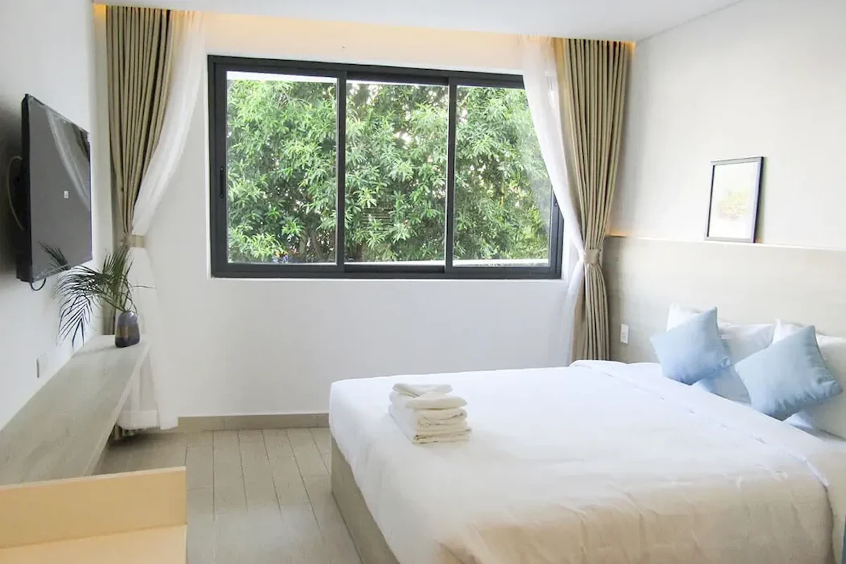 Dla max. 4 osób, Przestrzeń zewnętrzna: Balkon, Kanały telewizji: Angielski, Telefon w pokoju, Aneks kuchenny, prysznic, Powierzchnia pokoju: ok. 38 - 40 m2, Rodzaj podłogi: płytki, Sprzątanie codziennie, 1 sypialnia, Drzwi łączące między pokojami, Maksymalna liczba osób dorosłych: 4, Maksymalna liczba dzieci: 2, Widok na miasto,Widok na ogród, Liczba łazienek: 1, Liczba toalet: 1, Zestaw do parzenia kawy i herbaty, Klimatyzacja: Klimatyzacja centralna, Działa w godzinach: 24hSport i rozrywka