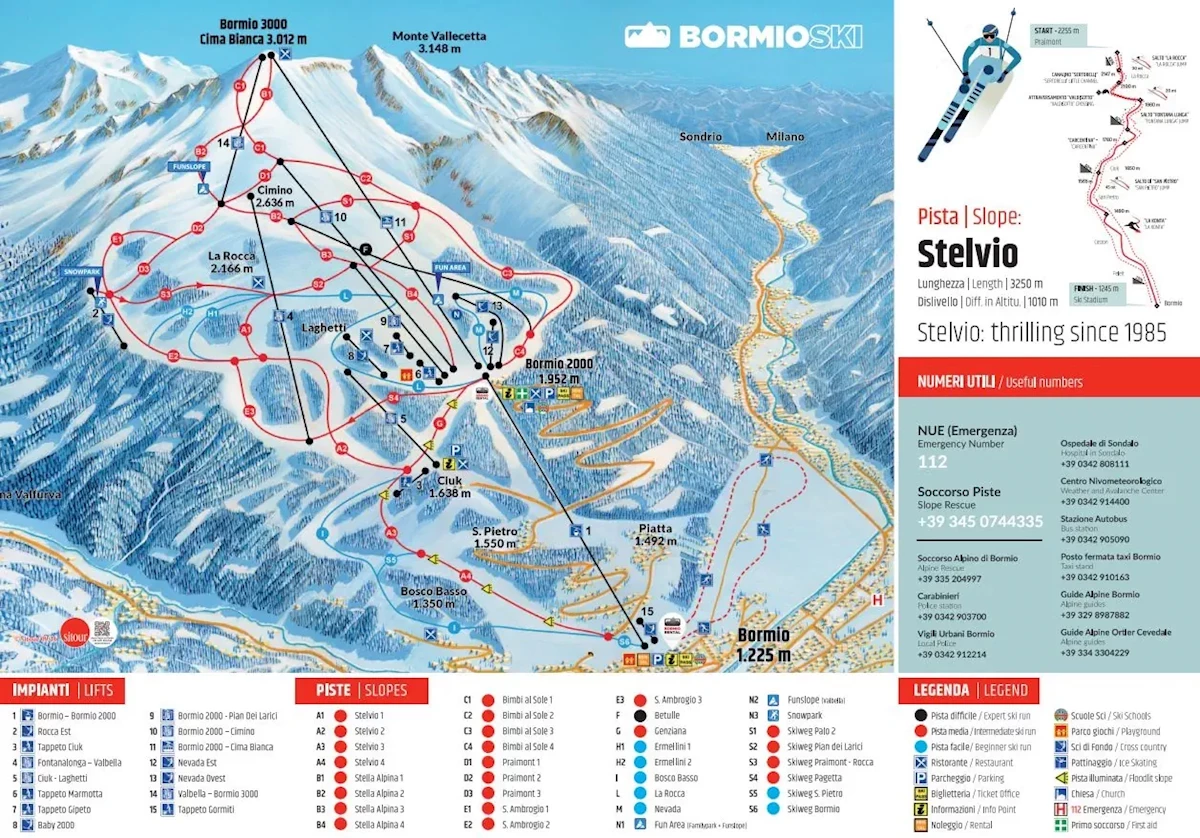 hotel zlokalizowany jest w średniowiecznym miasteczku Bormio. Do centrum z licznymi sklepami, barami i restauracjami ok. 350 m. W pobliżu znajduje się ośrodek narciarski Bormio z 50 km tras narciarskich o różnym poziomie trudności i 14 wyciągami. Najbliższy wyciąg oddalony o ok. 400 m.Wyposażenie