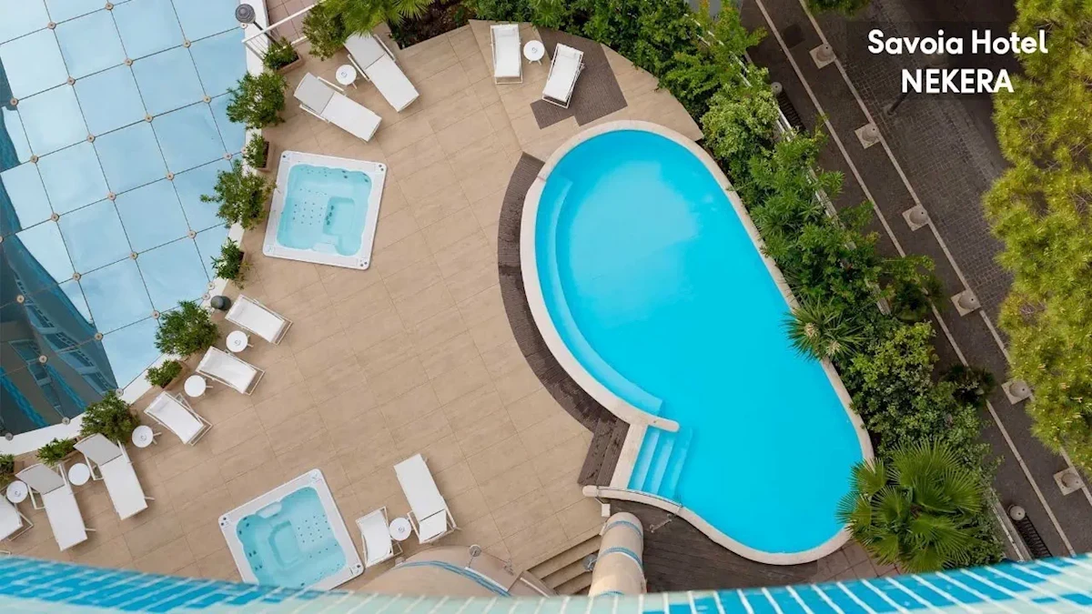 Hotel zlokalizowany jest w samym sercu miejscowości Rimini, nad brzegiem morza, przy nadmorskiej promenadzie. W pobliżu znajdują się liczne sklepy, bary, restauracje i kluby. Przystanek autobusowy znajduje się przy hotelu, dworzec kolejowy – ok. 1,5 km. Parco Federico Fellini – ok. 900 m; Historyczne Centrum Miasta – ok. 1,7 km; Molo di Levante Capitan Giulietti – ok. 2 km.Plaża