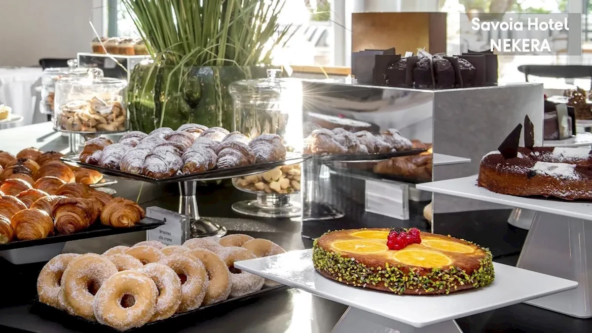 ze śniadaniem serwowanym w formie bufetu w sali śniadaniowej. Szeroki wybór produktów słonych i słodkich: domowe ciasta, pieczywo, owoce, warzywa, lokalne wędliny i sery.Kategoria Nekera