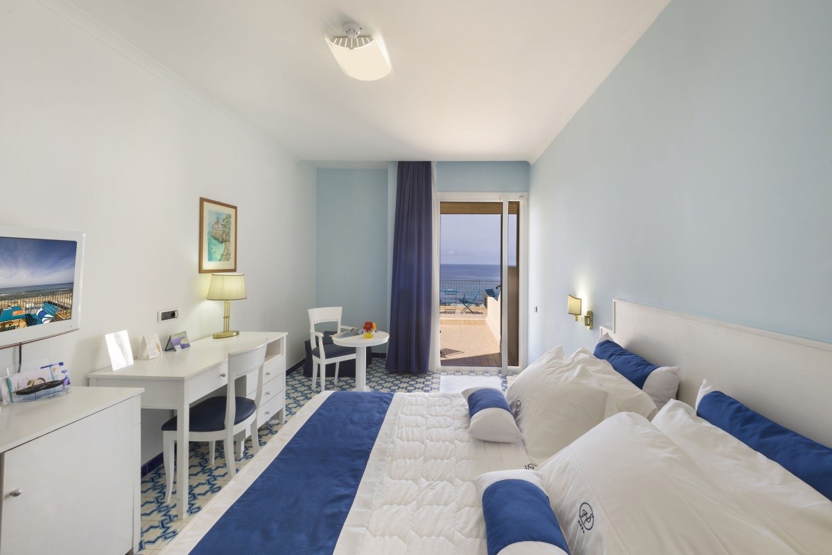 - 16-20 m2, dwuosobowy, deluxe, od strony basenu, widok na morze, prysznic lub wanna, toaleta, suszarka do włosów, klimatyzacja, minibar za opłatą, sejf, telewizor (telewizja satelitarna), WiFi, balkon
