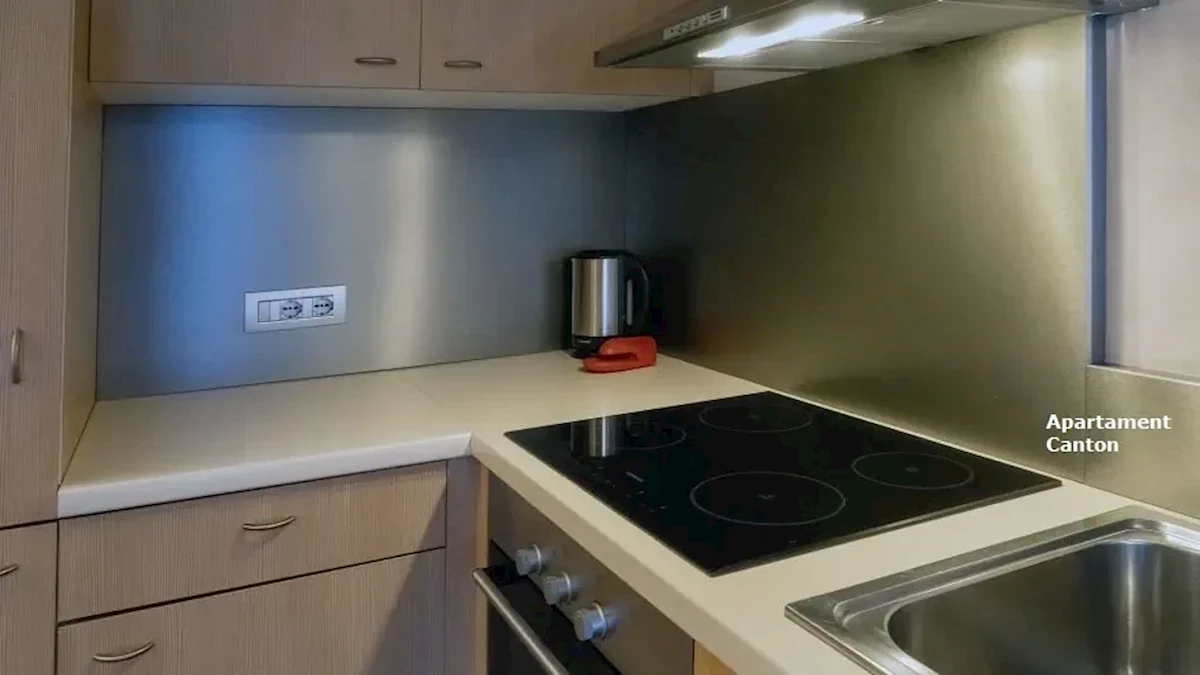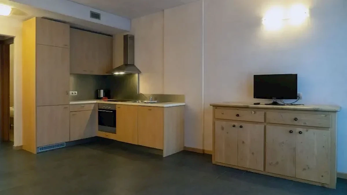 do najbliższych wyciągów - gondolka Cassana ok. 600 m po stronie Carosello 3000. Przystanek skibusa (gratis) znajduje się ok. 50 m od apartamentu. Przy dobrych warunkach śniegowych możliwy powrót na nartach. Trasy biegowe koło Mottolino.Wyposażenie
