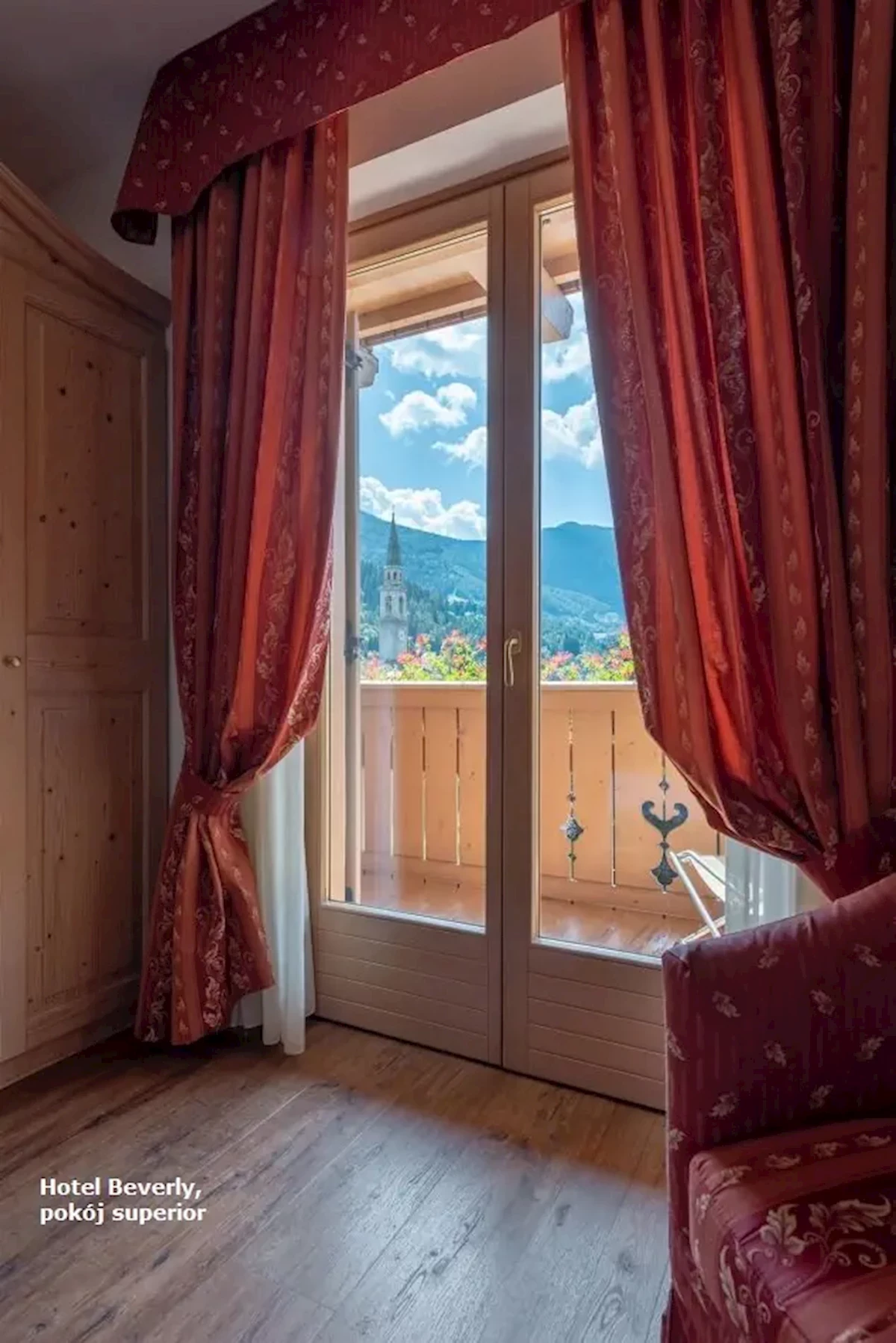 hotel dysponuje 36 pokojami dwuosobowymi - pokoje dwuosobowe typu STANDARD (ok. 20 m2); z łóżkiem małżeńskim, francuskim lub dwoma pojedynczymi. Łazienka z WC; TV-sat., telefon, sejf, minibar; większość pokoi posiada balkon. Pokoje typu SUPERIOR (ok. 50 m2); przeznaczony dla dwóch do trzech osób; składa się z pokoju dziennego z łóżkiem dwuosobowym, sypialni z łóżkiem dwuosobowym. Łazienka z jacuzzi i WC; telefon, sejf, minibar, 2 x TV-sat. ALPINE SUITE (ok. 50 m2) przeznaczony dla dwóch do czterech osób, ma 2 łazienki, łóżko małżeńskie oraz rozkładaną sofe z z dwoma miejscami do spania, WC; telefon, sejf, minibar, 2 x TV-sat, widok na góry; Pokoje typu SUITE PANORAMA (ok. 65 m2); przeznaczony dla dwóch do 4 os. na najwyższym piętrze, składa się z pokoju dziennego z łóżkiem dwuosobowym, sypialni z łóżkiem dwuosobowym. Łazienka z wanną z hydromasażem lub wielofunkcyjnym prysznicem i WC; telefon, sejf, minibar, 2 x TV-satWyżywienie