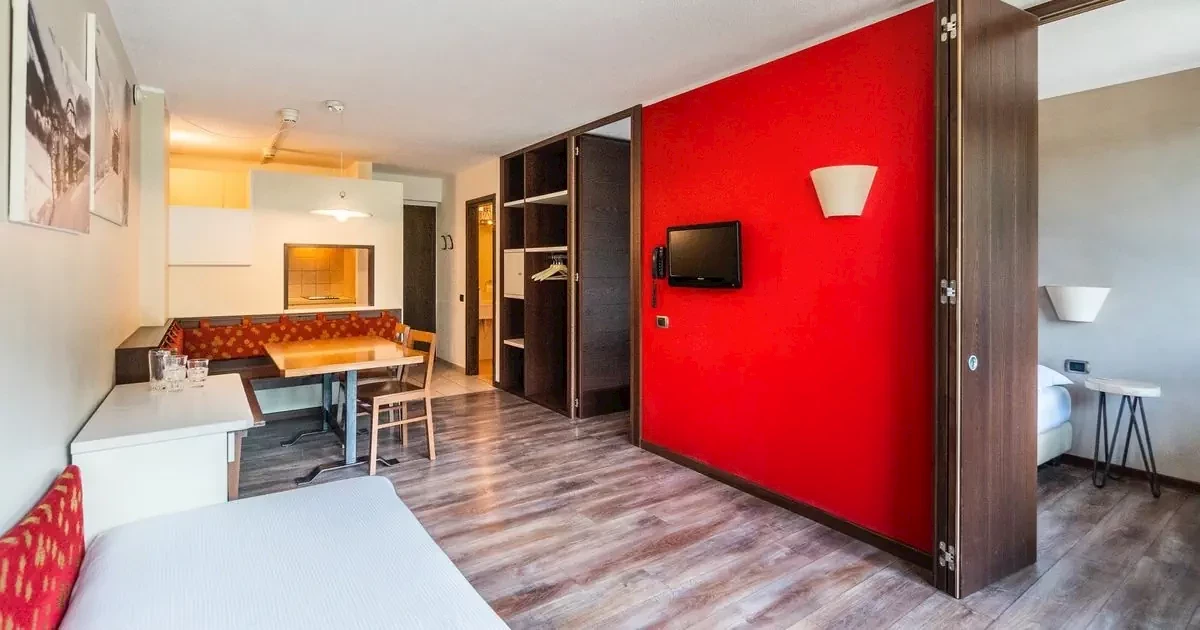 Komfortowy 3-gwiazdkowy obiekt Residence Ambiez położony jest malowniczo na skraju lasu, ok. 200 m od wyciągu Groste i wyciągu krzesełkowego Grostini. W zależności od warunków narciarskich możliwy jest zjazd na nartach pod sam obiekt. Centrum miasteczka Madonna di Campiglio jest oddalone o ok. 1 km.Wyposażenie