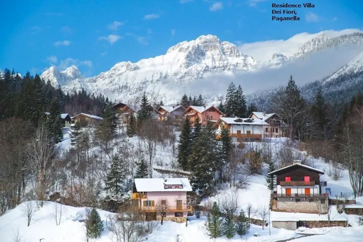 na wysokości ok. 850 m n.p.m., ok. 700 m od centrum miasteczka Cavedago, z widokiem na malownicze Dolomity Brenta, w regionie Ski Paganella, we włoskim Trydencie. Do lotniska w Weronie ok. 130 km, w Treviso 260 km, do Bergamo ok. 220 kmWyciągi narciarskie
