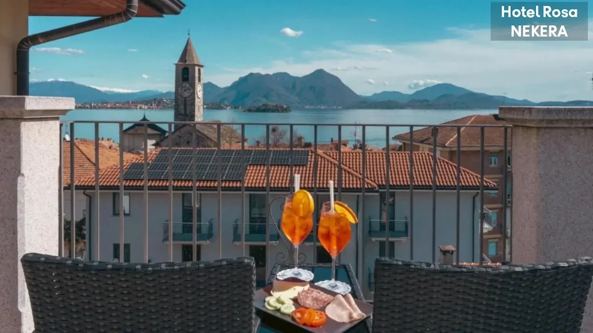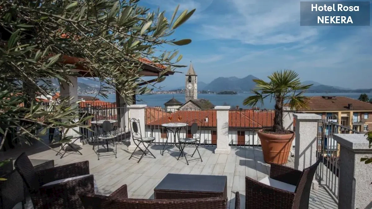 , w regionie Piemont, w samym sercu historycznego centrum miejscowości Baveno, nad Jeziorem Maggiore. Elegancki, czterogwiazdkowy hotel położony jest przy spokojnej ulicy Via Montegrappa, zaledwie ok. 150 m od jeziornej promenady i nabrzeża oraz kilku minut spacerem od przystani statków kursujących na Wyspy Boromejskie. Z hotelu roztacza się panorama na jezioro, Isole Borromee i prealpejski krajobraz; do Stresy ok. 3 km, do Verbania Pallanza ok. 10 km. Najbliższa mała plaża nad jeziorem znajduje się w odległości ok. 8 minut spacerem od obiektu. Port lotniczy Mediolan Malpensa oddalony jest o ok. 35–60 kmPlaża