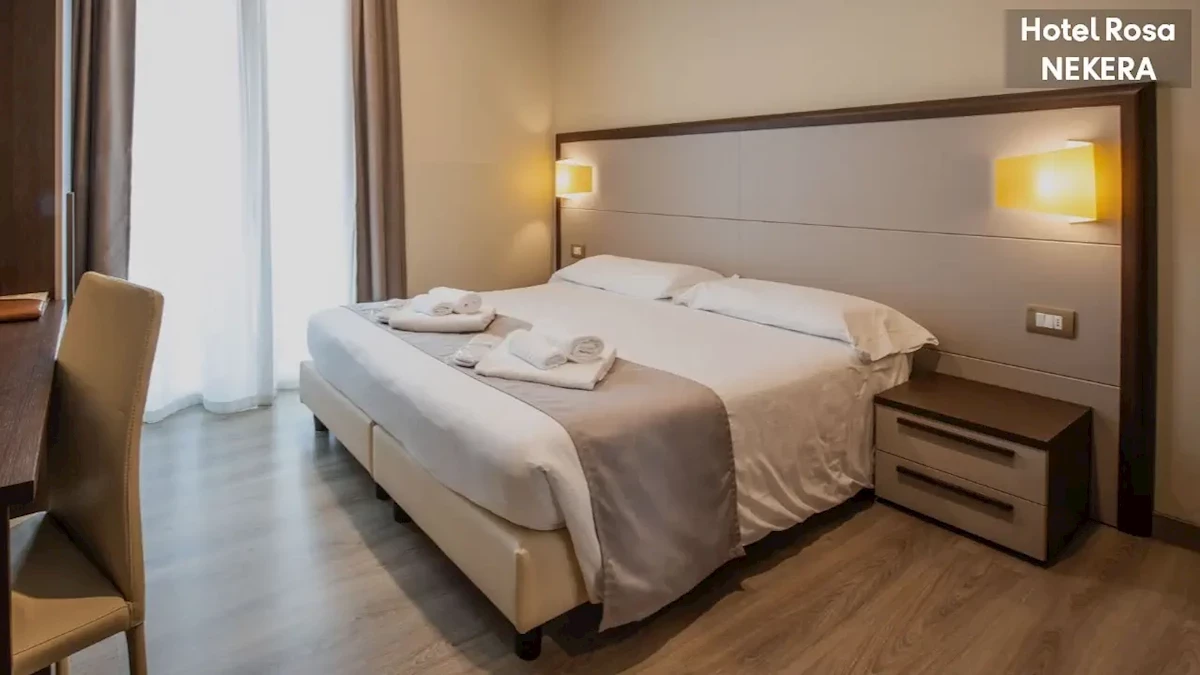 Pokój Ekonomiczny, ok. 18 m², łóżko małżeńskie lub 2 łóżka pojedyncze, klimatyzacja, TV-Sat., telefon, minibar (płatny), czajnik elektryczny z zestawem do przygotowania kawy i herbaty, sejf, prywatna łazienka (prysznic, WC, bidet, suszarka do włosów, szlafroki, kapcie, bezpłatny zestaw kosmetyków. Pokój Superior, ok. 18 m² dla max 2 osób dorosłych, zlokalizowany na wyższych piętrach, często w części wieżowej budynku. Składa się z sypialni z łóżkiem małżeńskim lub 2 łóżkami pojedynczymi, klimatyzacji indywidualnie sterowanej, TV-Sat., telefonu, minibaru (płatny), sejfu, czajnika z zestawem do przygotowania kawy i herbaty, prywatna łazienka (prysznic, WC, bidet, suszarka do włosów, szlafroki, kapcie, bezpłatne kosmetyki). Wszystkie pokoje Superior posiadają balkon umeblowany stolikiem i krzesłami, z widokiem na miasteczko, góry lub częściowo na jezioro Maggiore i Wyspy Boromejskie.Wyżywienie