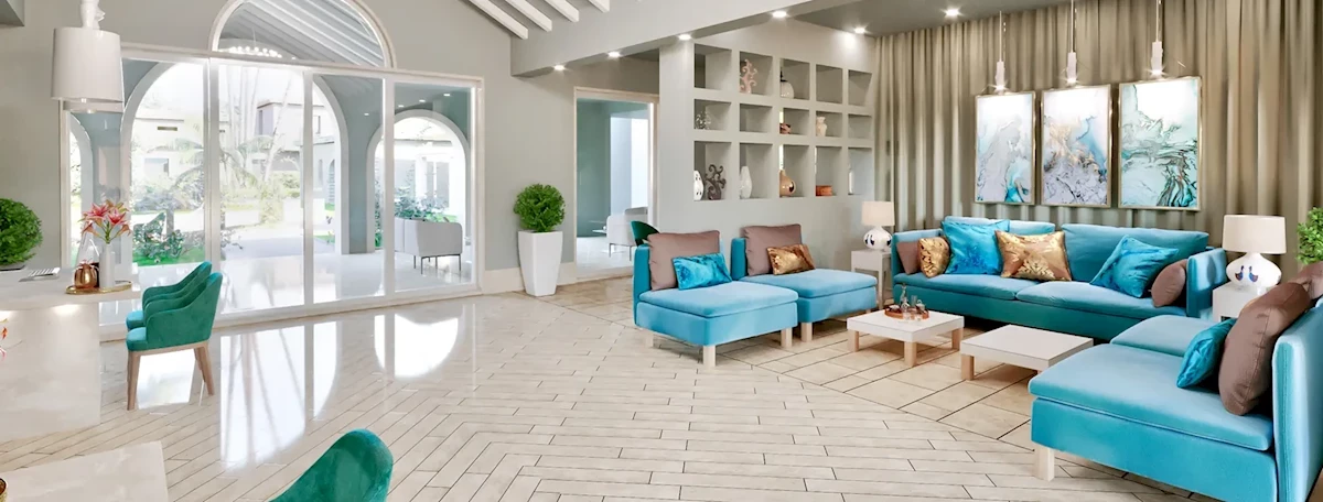 Recepcja 24h/7, przestronne lobby. Rozległy basen o nieregularnym kształcie ze zjeżdżalnią, basen pływacki, basen dla dzieci, basen zarezerwowany dla pokoi Prestige, bezpłatne leżaki i parasole przy basenie. Restauracje: restauracja główna, restauracja La Gaddura z tradycyjną kuchnią sardyńską, restauracja z kuchnią śródziemnomorską, restauracja BluBeach przy plaży (płatne), 4 bary, w tym bar przy basenie, na plaży. Pozostałe informacje. Za dodatkową opłatą: parking, centrum SPA, masaże, butiki, pomoc medyczna.Internet