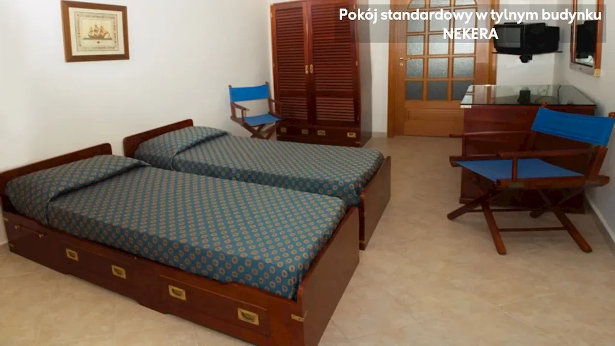 Noclegi, wyżywienie zgodnie z rezerwacją, telefoniczną opiekę rezydenta. Dodatkowo w przypadku imprez pakietowych z przelotem, oprócz ww. świadczeń w cenie zawarty jest: przelot, opłata lotniskowa, opłata za wylot z lotniska lokalnego, transfer lotnisko-hotel-lotnisko (chyba, że dana oferta stanowi inaczej), ubezpieczenie dla imprez turystycznych, bezpośrednia opieka polskojęzycznego rezydenta - w sezonie letnim (wakacyjnym): Kreta, Rodos, Turcja (Riwiera), Majorka, Bułgaria, całorocznie: Malta, na pozostałych kierunkach opieka telefoniczna lub przez czat w serwisie moja.nekera.pl. W przypadku imprez turystycznych opartych o przeloty przewóz bagażu może być nieuwzględniony w cenie. Cena uzależniona jest m.in. od przewoźnika oraz terminu wyjazdu, należy ją zweryfikować podczas zakupu. Linie lotnicze, w których bagaż jest w cenie (20 kg bagaż główny oraz bagaż podręczny) - przeloty czarterowe: Enter Air, LOT (dla wylotów na Rodos), Sky Express, Holiday Europe, European Air Charter, Ryan Sun (dla wylotów na Rodos) oraz przeloty rejsowe: Sun Express, Corendon, Pegasus Airlines, Emirates, Fly Dubai, Quatar Airlines, Air France, Austrian Airlines.Przykładowe linie lotnicze, gdzie bagaż jest dodatkowo płatny to: FR (Ryanair), W6 (WizzAir), Easy Jet.Podane godziny serwowania posiłków oraz funkcjonowania poszczególnych elementów infrastruktury hotelowej mogą ulec nieznacznym zmianom, ze względu na sezonowość, siły wyższe i inne okoliczności.