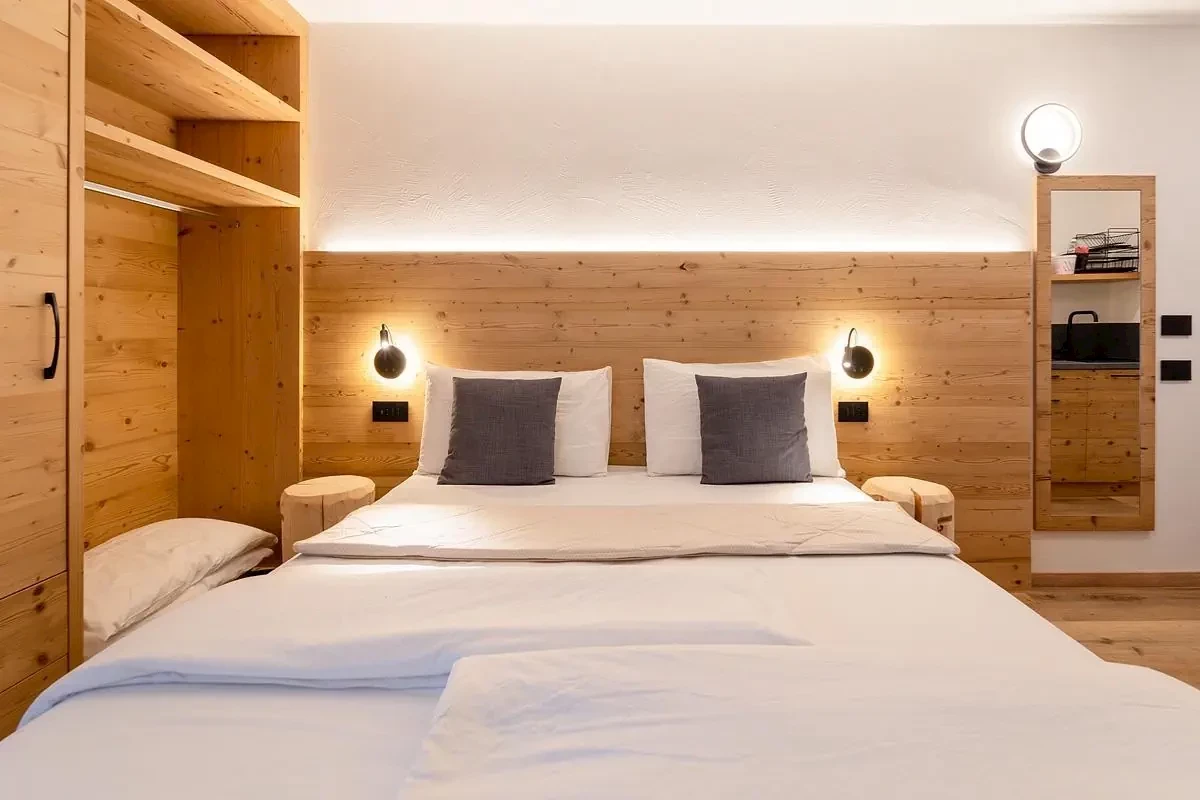 Junior Suite 2/3 - 22-30 m - pokój z łóżkiem małżeńskim i ewentualnie 1 łóżkiem pojedynczym, łazienka z prysznicem z hydromasażem, balkon; część pokoi z małym aneksem kuchennym lub sauną na podczerwieńStandard 2/3/4 - 18 m - pokój z łóżkiem małżeńskim z możliwością rozdzielenia łóżek i ewentualnie 1 lub 2 łóżkami pojedynczymi lub z rozkładanym fotelem lub sofą dla 1 lub 2 osób lub łóżkiem piętrowym, łazienką, zazwyczaj balkonem; część pokoi znajduje się na poddaszu