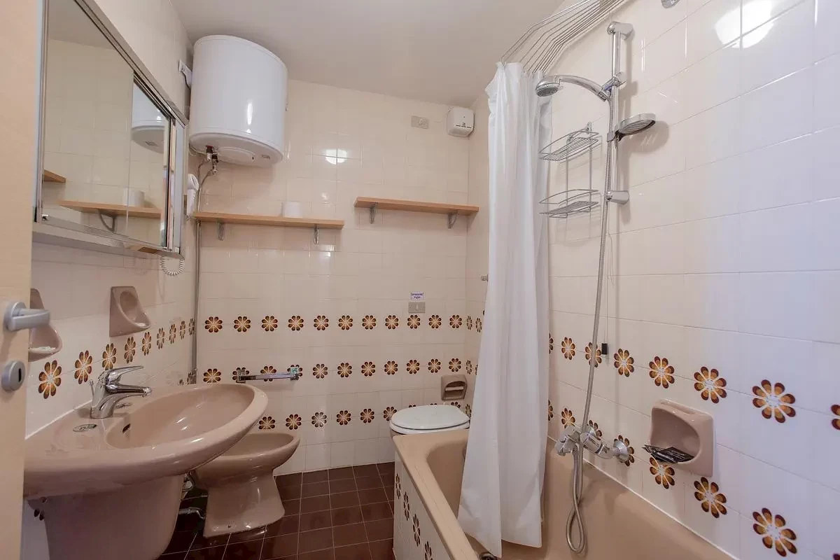 mono 2/3 - 25 m - pokój dzienny z aneksem kuchennym, 2 łóżkami pojedynczymi i dodatkowym łóżkiem dla 1 osoby, łazienka, balkonbilo 5+1 typ A - 40 m - 1 sypialnia z łóżkiem małżeńskim i łóżkiem piętrowym, pokój dzienny z oddzielnym aneksem kuchennym i rozkładaną kanapą dla 2 osób, łazienka z wanną; 6. łóżko tylko dla dzieci do nieukończonych 11 lat