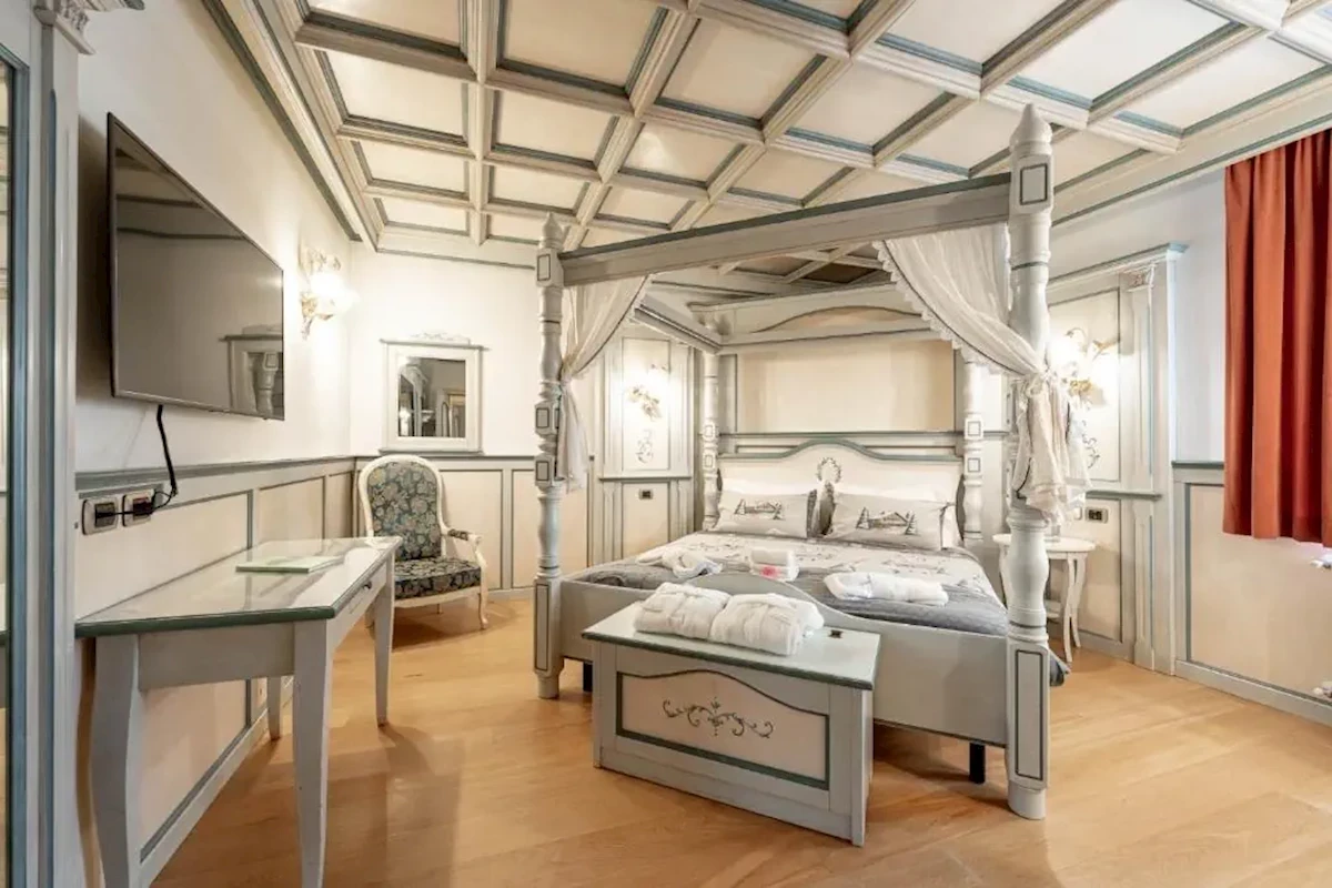 na wysokości ok. 1445 m n.p.m., w centrum słynnego Canazei, w Dolinie Val di Fassa we włoskim Trydencie. Do lotniska w Weronie ok. 200 km, do Treviso ok. 150 kmWyciągi narciarskie