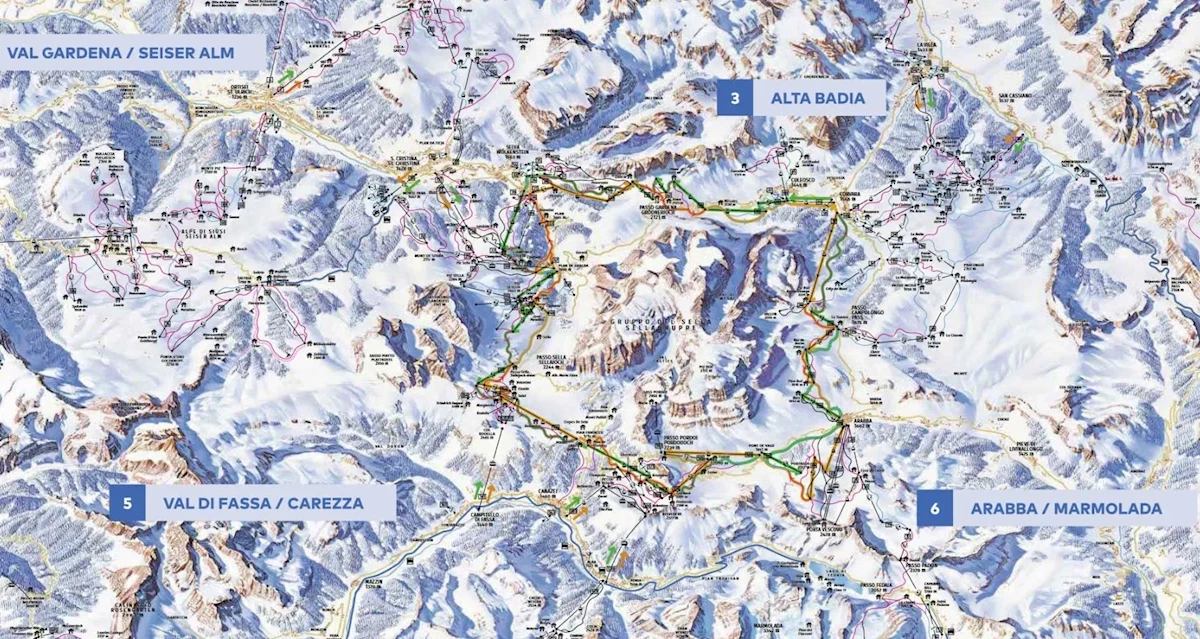 Canazei -Belvedere / Val di Fassa, wys. 1440-2950 m. n.p.m. Ok. 21 km. tras narciarskich: 5,4 km (7 tras) niebieskich - łatwych, 12,3 km (12 tras) czerwonych - średnich, 1,4 km (1 trasa) czarna - trudna. 14 wyciągów: 4 kolejki gondolowe, 5 wyciągów krzesełkowych, 5 wyciągów orczykowych.Ważne informacje