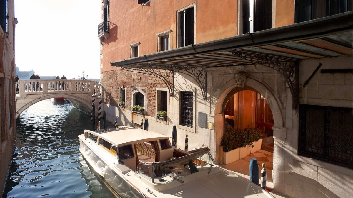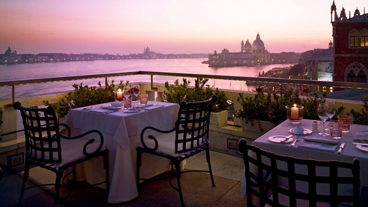 Hotel: Najsłynniejszy, najwyższej klasy hotel w mieście mieści się w mistrzowsko odrestaurowanym pałacu, zaledwie kilka kroków od Piazza San Marco i innych atrakcji. Głównym budynkiem jest XIV-wieczny Pałac Doży Dandolo. Panoramiczna restauracja z tarasem na dachu, imponujący hol z barem, salony i prywatny dok dla łodzi. Na lotnisko można dotrzeć taksówką wodną w około 30 minut.