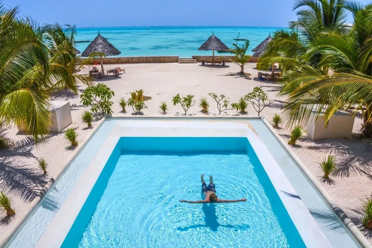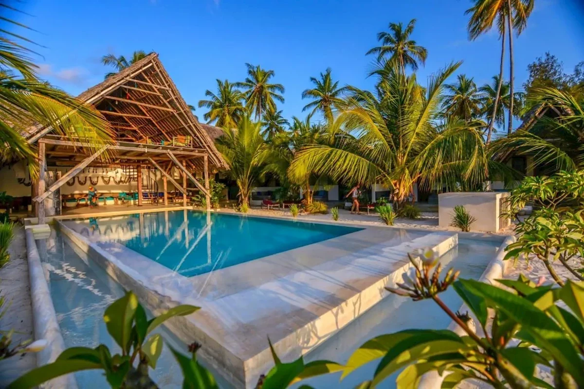 Znajdujący się w południowo-wschodnim Zanzibarze ośrodek urlopowy Nur Beach usytuowany jest w regionie turystycznym Hiari, w miejscowości Jambiani, obok wybrzeże Oceanu Atlantyckiego. Placówka mieści się w dzielnicy pełnej hoteli, a także lokali gastronomicznych oraz sklepów. Ośrodek położony jest przy szerokiej piaszczystej plaży, w odległości 40 kilometrów od stolicy, gdzie można znaleźć ciekawe atrakcje, wśród których na uwagę szczególnie zasługują zabytki architektoniczne. Dojazd do portu lotniczego trwa 40 minut.Wyposażenie