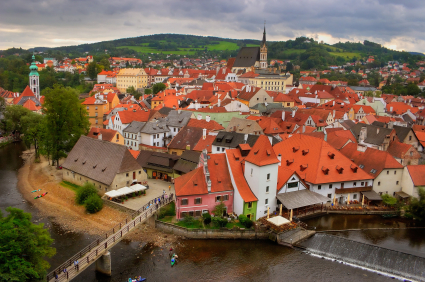 Cesky Krumlov. Znajduje się tam zabytkowe centrum i zamek – Hradek, górujący nad miastem.