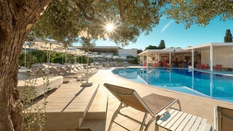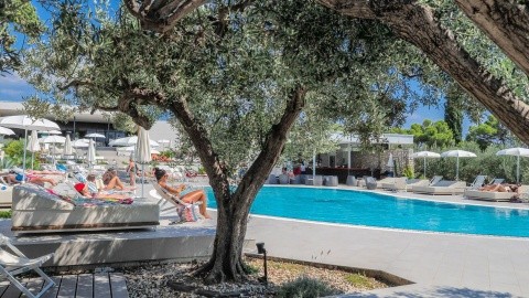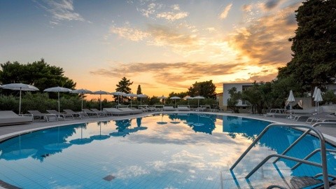 Plaża żwirowa 100 m Na lekkim zboczu w zieleni Basen z wodą morską Letnia animacja dla dzieci