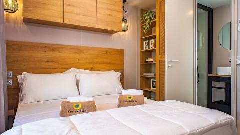 Prywatna piaszczysta plaża 250 m Darmowe wifi na plaży Funkcjonalnie wyposażone domki mobilne